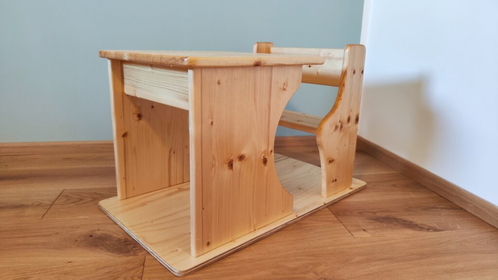 Einen weiteren richtig coolen Auftrag habe ich von einem jungen Elternpaar erhalten. Für ihren Sprössling durfte ich einen maßgefertigten Kinderschreibtisch kreieren, der direkt aus dem Tischchen mit der passenden Sitzgelegenheit bestehen sollte. Zum Abschluss wurde dieser noch mit dem Namen versehen.